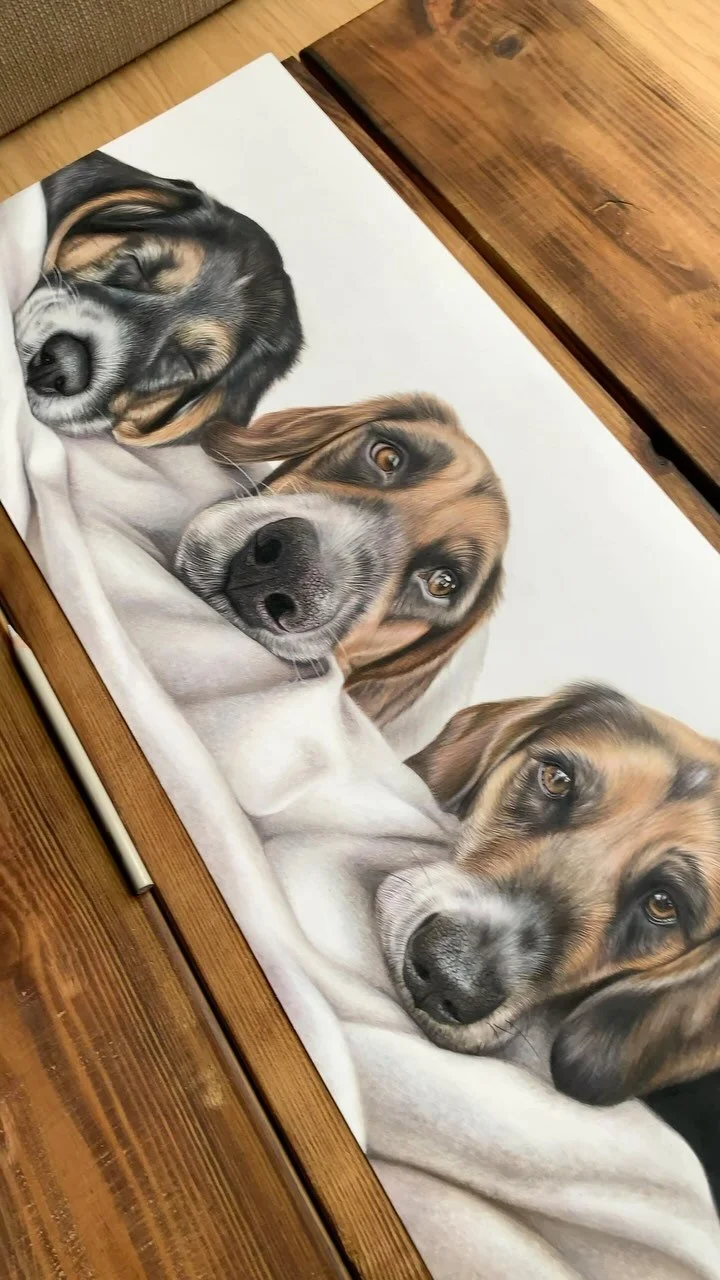With my extensive 11 years of experience and unique techniques, I capture your beloved furry family members onto paper, down to the very last whisker. I pride myself in providing you with a drawing that is more enhanced than the image. Drawing the attention to key features like glassy eyes, or combining a few of your favourite images into one. Enquire now to create a timeless display for your home.